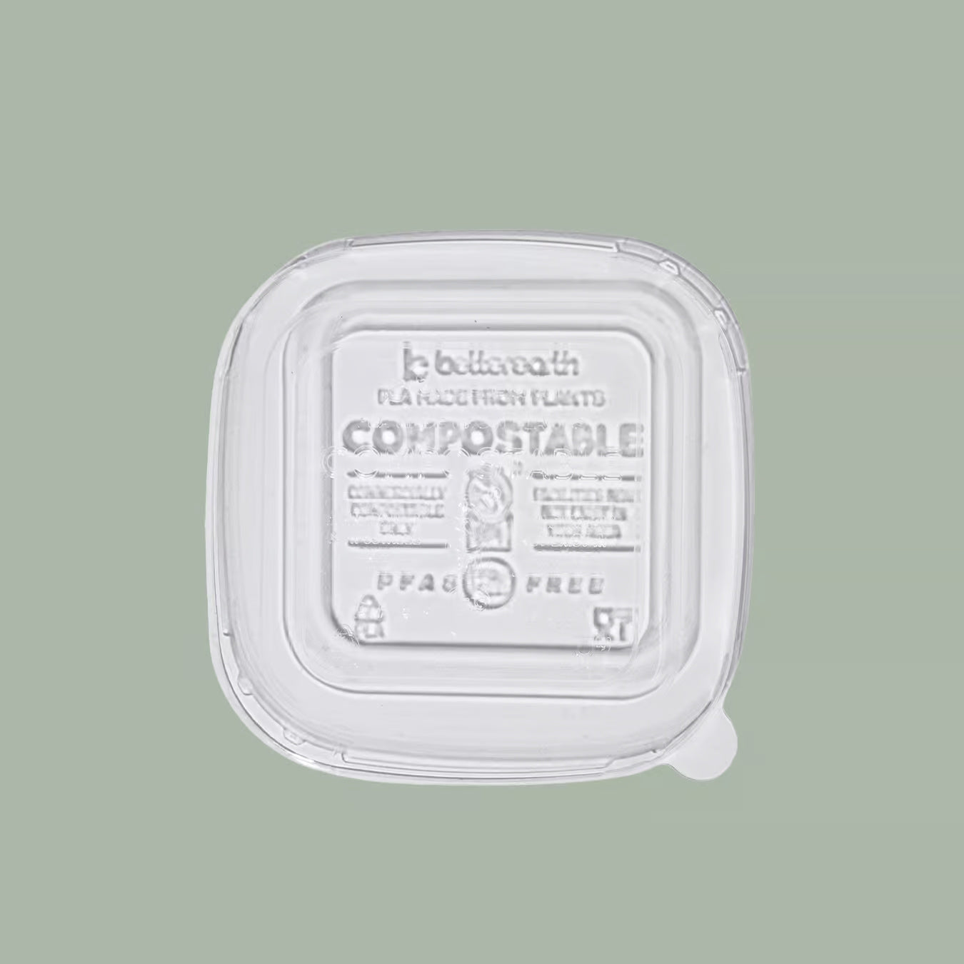 Our Clear PLA Embossed Lid for 20oz Square Better Bowls provides visibility while ensuring secure containment. Made from bio-based, compostable CPLA, this lid provides a secure seal while upholding our commitment to environmentally responsible solutions.