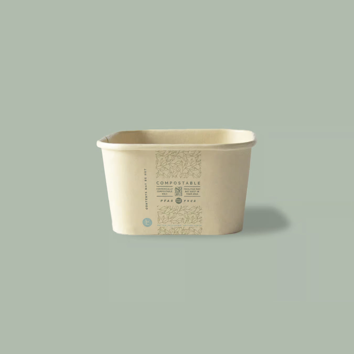 The 20oz Square Better Bowl from Better Earth combines function and eco-consciousness. Made from bio-based PLA lined bamboo paperboard, it’s durable, reliable, and compostable in a commercial facility. Its 20oz capacity makes it great for a variety of foods from ramen to salads. The PLA lining can withstand high heat and heavy moisture content food applications. Its low center of gravity makes the Better Bowl Collection great for take-out and delivery.