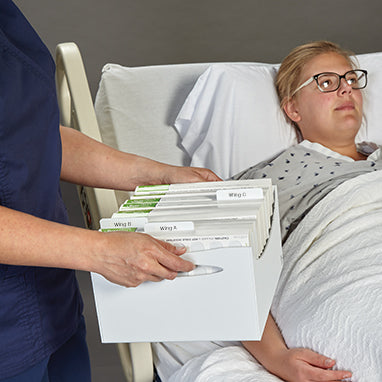 - Med Organization - Plastic bin with built-in handles holds 10 SureMed Multimed Packs with the spine up for easy identification of patient information. Ideal for organized storage inside the Punch Card Medication Carts (5079, 5112 & 5119).