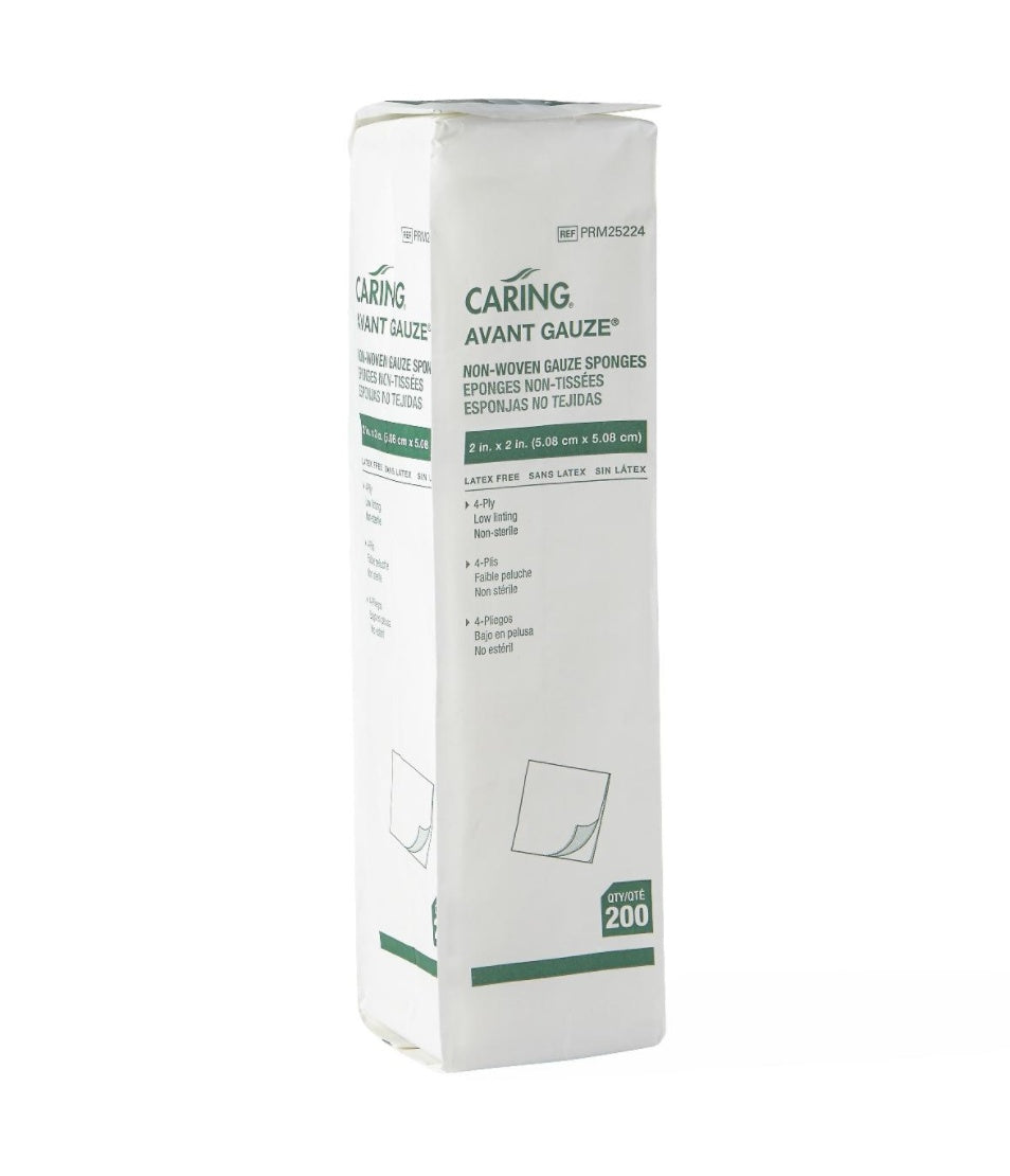 CARING NON-WOVEN NON-STERILE GAUZE SPONGE, 4 PLY, LATEX-FREE, 2" X 2", 200/BAG