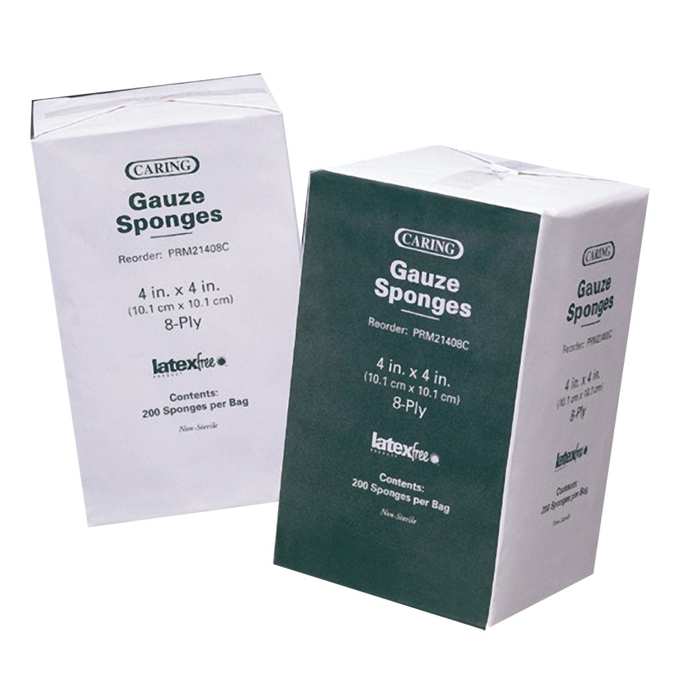 CARING NONSTERILE, WOVEN GAUZE SPONGES, 4" X 4", 12-PLY, 200/BAG