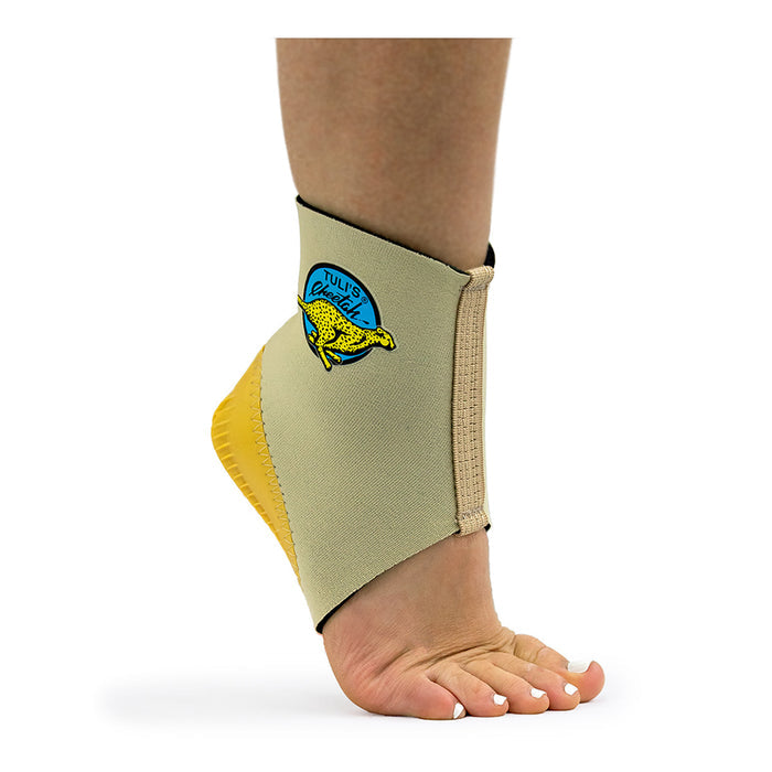 The Tuli's Cheetah Fitted combines a heel cup with a comfortable neoprene sleeve, providing enhanced support and cushioning. Its design ensures the sleeve stays in place during high-impact activities, offering reliable heel support. Ideal for gymnasts, dancers, and those engaging in activities that require additional foot stability.