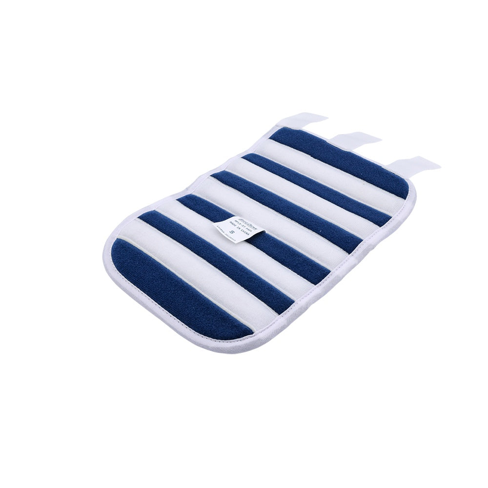 Immobilize the elbow, without preventing arm movement. Ideal for covering and protecting arm IV sites. Constructed of nylon laminated foam with reinforced aluminum stays. Hook-and-loop tab closures for easy application and removal.