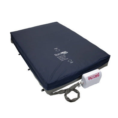 The HD Airfloat Air Mattress with Pump is a top-quality mattress designed to provide secure, reliable support and optimal weight distribution to a wide range of patients up to 1000 lb. This premium mattress features four inflation modes for optimal adaptability. Static mode provides steady, consistent pressure throughout all air cells for maximum stability at the current weight setting. Alternating pressure helps to redistribute weight to help improve circulation and alleviate pressure wounds. The seat function provides optimal support and alternating pressure when patients are in an upright position. The max firm feature fills the air cells to the maximum firmness for safe transfers. The Mattress is designed with 16 10-inch alternating air cells, and four static cells at the head section. The Mattress features adjustable air flow to provide customized levels for individualized comfort. Cell-on-cell technology helps to prevent deflation in case of power failure.