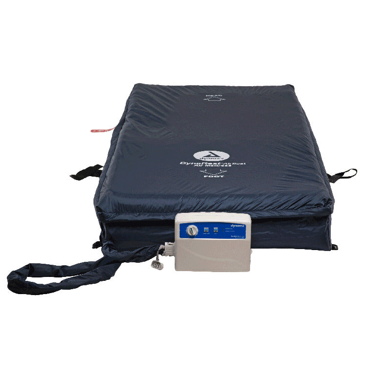 The Airfloat 300 provides a medical-grade solution to a wide range of patients up to 350 lb. The Airfloat 300 combines dual therapies of low air loss and alternating pressure in one unit used to treat pressure wounds. 20 8-inch inflatable air cells and adjustable air flow dial with weight indicators provides customized levels for each patients comfort and individual requirements. There is also a static mode that inflates all air cells to allow caretakers to suspend the alternating pressure, reducing the risk of injury during repositioning or transfers. The DynaRest Airfloat 300 also comes with a pillow function, for added patient comfort.