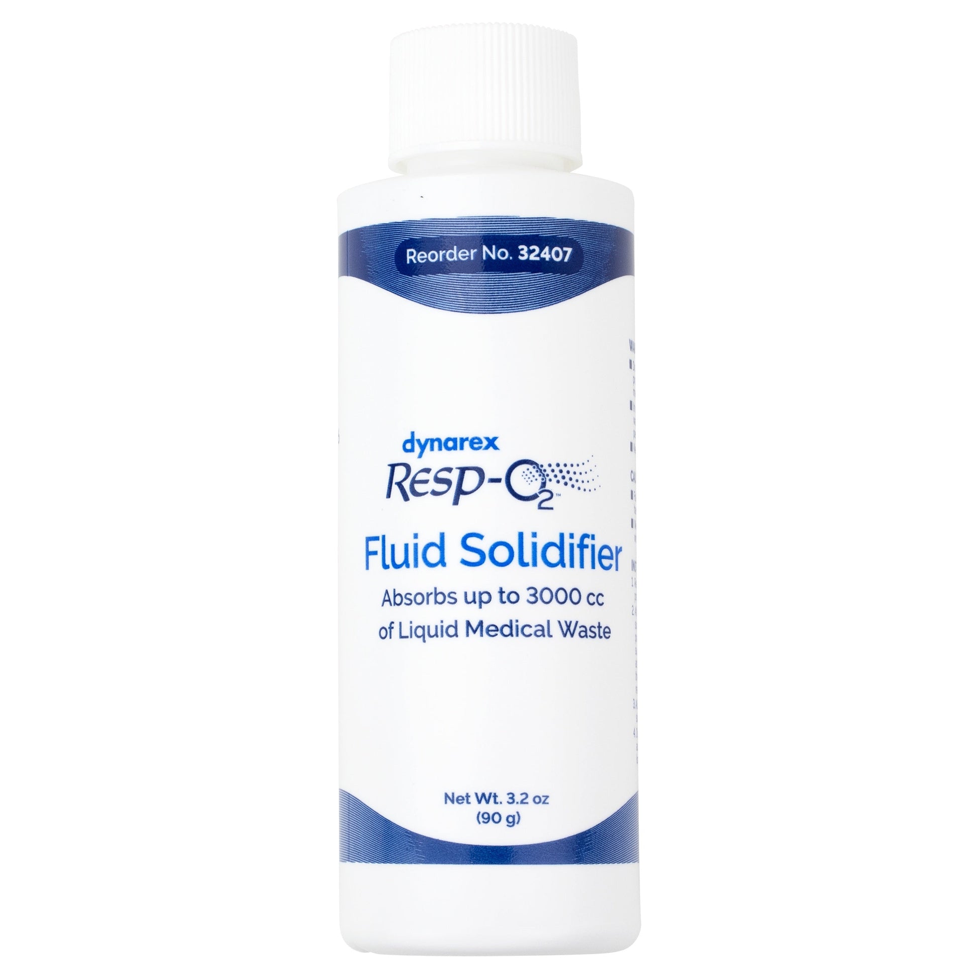 Resp-02 Fluid Solidifiers are designed to be used in conjunction with suction canisters to provide safe and effective containment of biohazardous liquids. The Fluid Solidifier is formulated to quickly turn secretions into a gel, greatly reducing the risk of exposure to contaminated bodily fluids and aerosolized bloodborne pathogens. The Fluid Solidifier allows for the safe transport of infectious waste and eliminates the risk of spills and sprays.