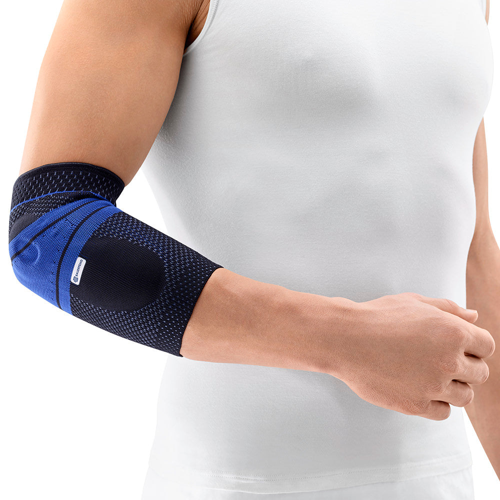 Features two anatomically contoured silicone inserts that surround the medial and lateral epicondyles, and rest on the flexor and extensor musclesInserts leave the elbow bones pressure-free, and provide intermittent compression to the soft tissue of the jointGraduated compression at edges prevents circulation constrictionLightweight, breathable knit does not retain heatMachine washableAvailable in Black, Nature or Titanium(Loosely measure arm circumference, slightly bent, at 4 ¾" below lateral elbow bone) Size 0 (6 ½" - 7 ½") Size 1 (7 ½" - 8 ¼"), Size 2 (8 ¼" - 9"), Size 3 (9" - 9 ¾"), Size 4 (9 ¾" - 10 ½"), Size 5 (10 ½" - 11 ½"), Size 6 (11 ½" - 12 ¼")BlackSize 3 (9" - 9 ¾")
