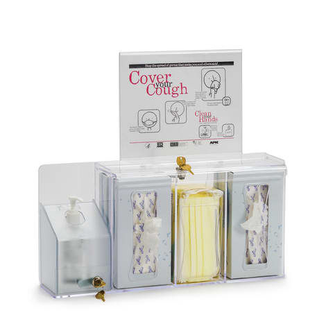Premium Health and Hygiene Stations are must-have organizers for every department because they are one of the easiest ways to help prevent the spread of hospital-acquired infections (HAIs) and viruses such as H1N1 and H5N1. Make supplies more visible to staff, patients, and visitors. You'll be amazed by the improvement in your infection control practices.