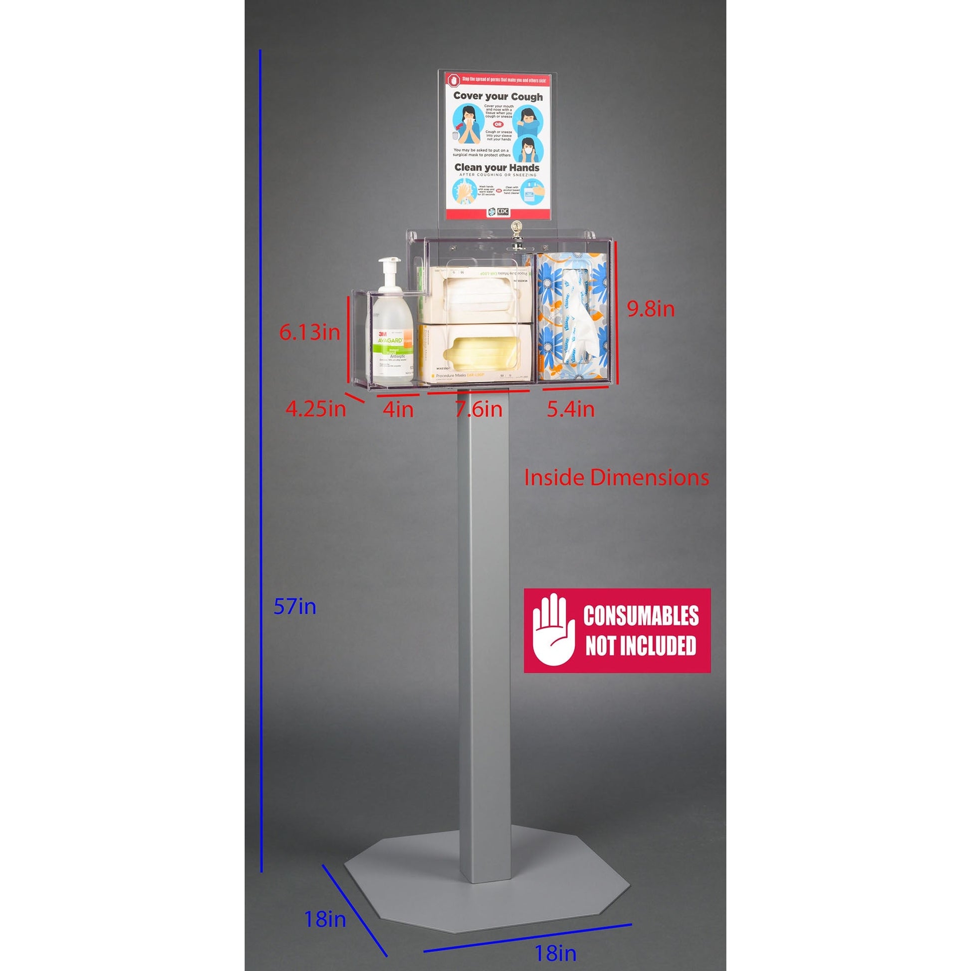 Locking Respiratory Hygiene Station S (3STL Steel Stand, RHS 3STL Kit, Decal Sign)