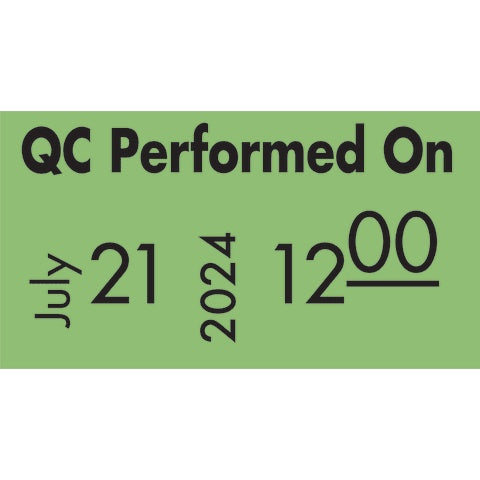 "QC PERFORMED ON" Labels • Fluorescent Green