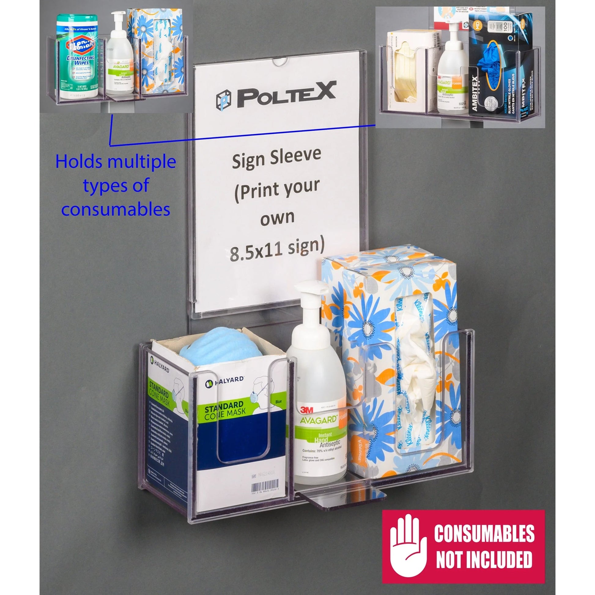 Our American made respiratory hygiene station displays a variety of consumables to help prevent the spread of infection in your hospital, clinic, workplace, office, restaurant, etc. Constructed from durable 1/4in thick PETG. Signs are removable if you do not need them