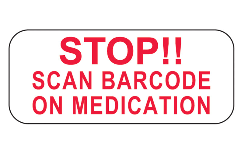 - Label reads: "Stop!! Scan Barcode on Medication"